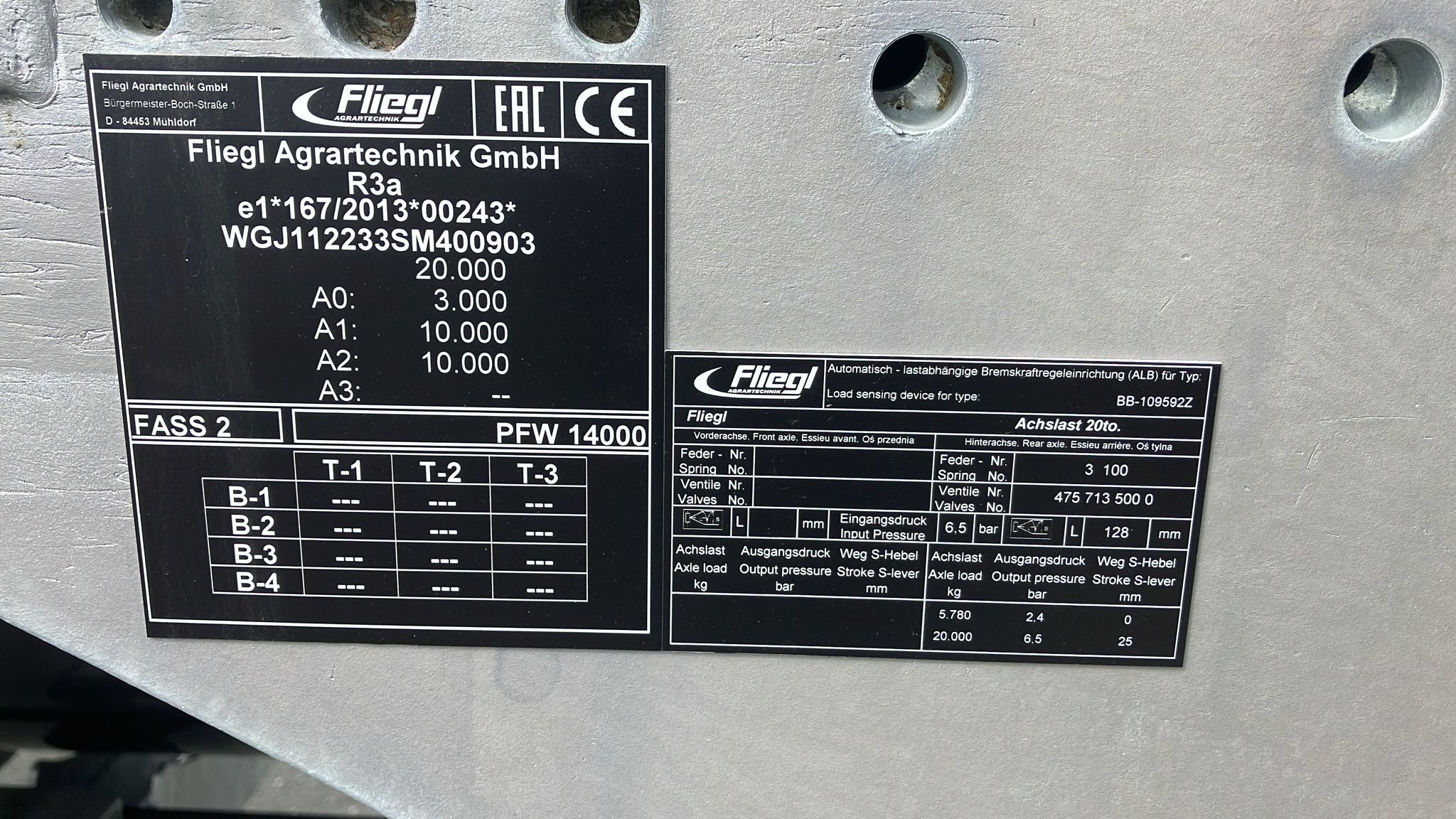 Zul. Gesamtgewicht 23.000kg (20.000kg Achslast, 3.000kg Stützlast);