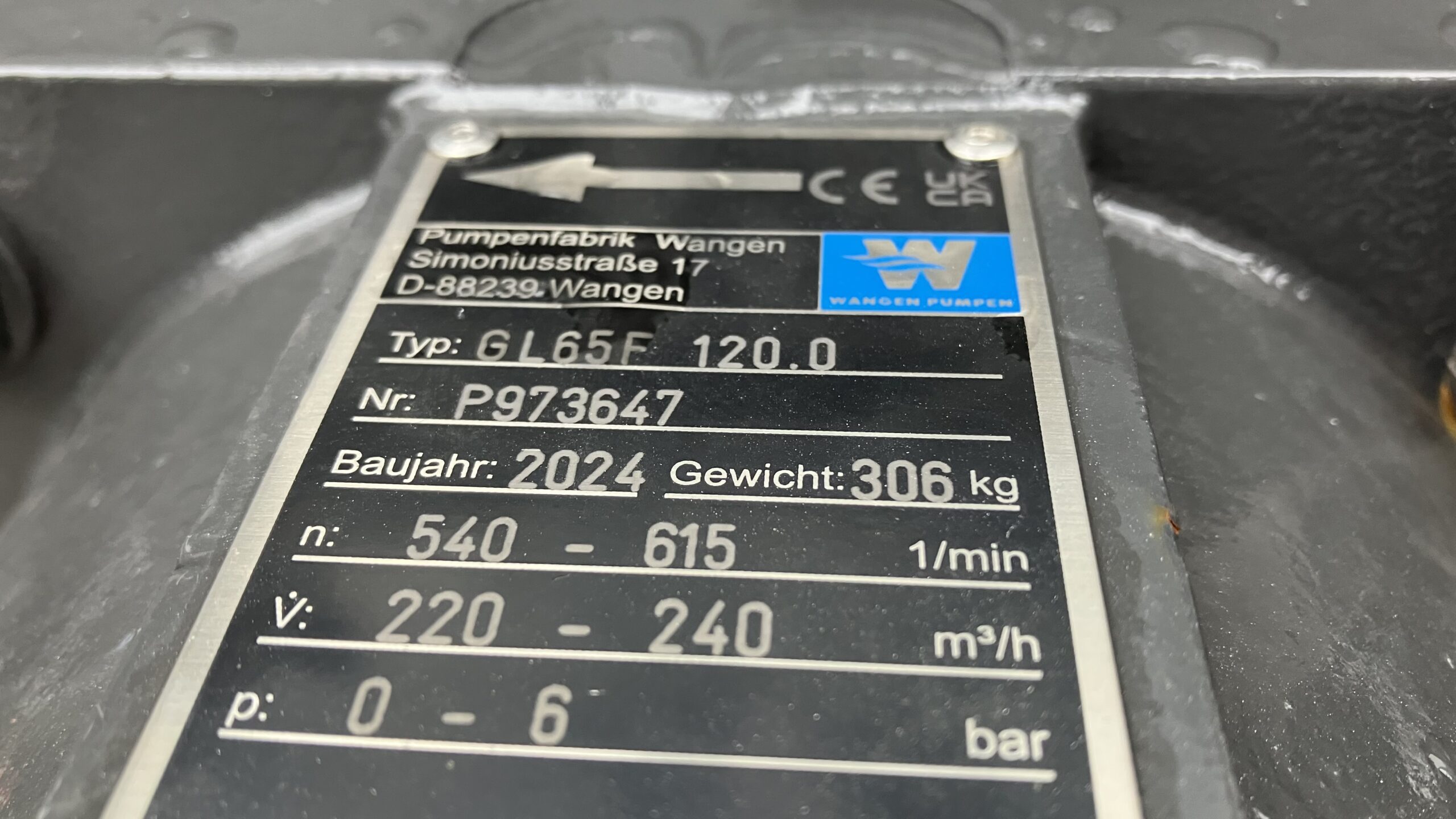 Wangen Exzenterschneckenpumpe 4.000 Liter, mit Steinfangmulde;